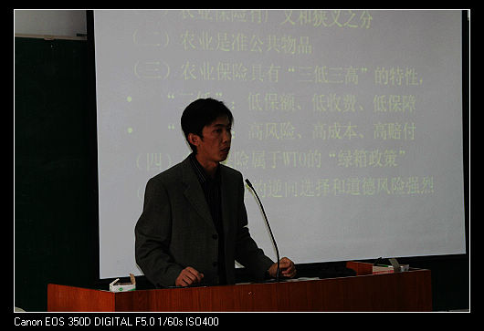 ——10月17日下午1.30分,在0616室,景宏军博士就支持农业保险发展的财政政策研究进行了演讲;