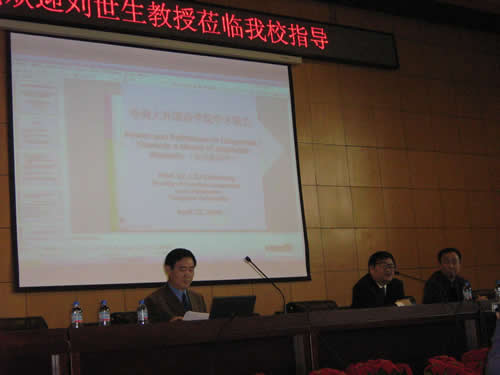 2008年4月27日上午9时,哈尔滨商业大学专家公寓国际报告厅内座无虚席,外语学院邀请清华大学外语系副主任、博士生导师、全国外语指导委员会委员、哈佛大学高级访问学者刘世生先生在此为全院师生作关于修辞学和文体学和文体学的报告。