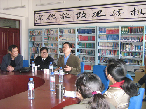 2008年4月27日下午14时,外语学院全体教师在主楼0520与清华大学外语系副主任、博士生导师、全国外语指导委员会委员、哈佛大学高级访问学者刘世生教授,北京化工大学外语系主任、全国外语指导委员会副主任陈仲利教授举行了座谈会。此次座谈会由张德富老师主持。