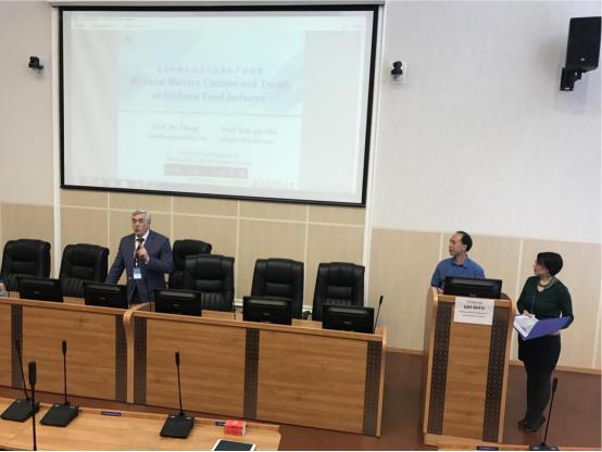 4月17日参加了第九届欧洲经济论坛的开幕式。4月18日,石彦国教授做了“东方饮食文化与大豆食品产业趋势”的学术报告,张娜教授对哈尔滨商业大学食品工程学院进行了介绍。4月18日两位教授作为评委参加了俄罗斯学生创新竞赛的现场评审工作;并代表评委对参赛学生颁发了证书。期间,石彦国教授还接受了俄罗斯乌拉尔电视台的采访,介绍了中国饮食文化的博大精深,丰富健康的中国传统食品。