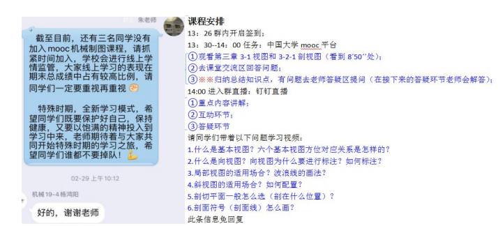 1.课前预习:教师们主要以中国大学MOOC或智慧树平台为依托,将已有课程进行改造和提升,将教师自己的资料和思想融入已有课程。指导学生熟悉平台操作流程,给学生发布电子教材,指导学生提前预习,建立钉钉或腾讯会议学习群作为互动、讨论、沟通的渠道。