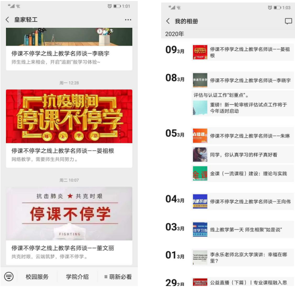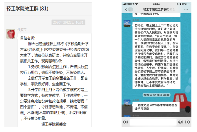 面对突如其来的疫情,按照学校的统筹部署,轻工学院提前谋划,主动把疫情对教育教学的压力转化为推动教学信息化建设的动力。3月2日,“线上新学期”如期而至,轻工学院106门次本科课程陆续开课。两周以来,经过学院全体师生共同努力,散布在全国各地的1600多名本科生通过网络相聚在课堂上,实现了“停课不停教、停课不停学”,教学秩序平稳,教学效果良好,师生满意度高。