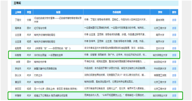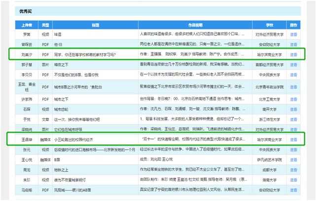 本次大赛得到了学校党委宣传部新媒体工作室的宣传推广,也得到了全校各学院的支持,设计艺术学院、轻工学院、外语学院等也纷纷投稿参赛,我校共计有339人参加比赛,53人获得入围资格。我校学生作品获得了评审专家的高度评价,获奖学生及指导教师也受邀在2021年1月在线上颁奖中进行交流和教学经验分享。