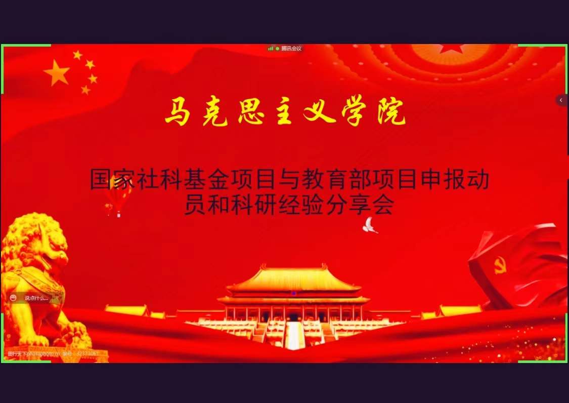 为营造学院良好的科研氛围,提升教师科研能力,增加国家级项目申报和教育部人文社科项目申报的参与度和中标率,2月8日晚,马克思主义学院举办国家社科基金项目与教育部项目申报动员和科研经验分享会,马克思主义学院院长于景洋及学院40余名教师参加会议。会议由学院科研秘书汪圣钧主持。