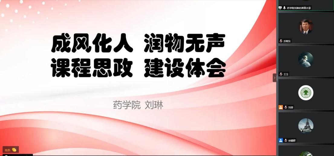 药学院教师刘琳在首届黑龙江省高等学校课程思政教学竞赛中获得本科赛道一等奖。她在本次教学经验交流会中作了题为“成风化人润物无声,课程思政建设体会”的教学经验分享汇报。刘琳介绍了课程思政的发展历程、概念与内涵,总结了课程思政的常见误区,提出了从知识中挖掘思政元素、以故事传递思政内涵、应用好“反面教材”进行思政教育以及以针对性问题为线索进行思政切入等课程思政呈现的具体方法,为教师结合自身课程特点创新课程思政的教学呈现方式提供了不同的思路。