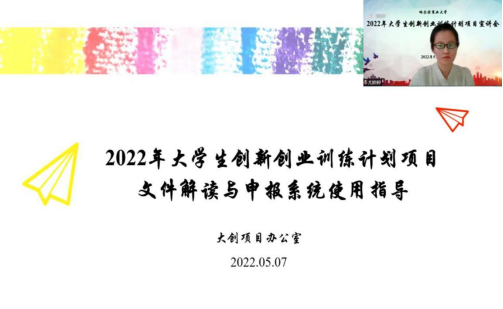 为更好地开展大学生创新创业训练计划项目申报工作,帮助学生全面了解项目申报流程及重点问题,进一步提升申报质量,5月7日下午,我校举办2022年大学生创新创业训练计划项目宣讲会,围绕如何提高大学生创新创业训练计划项目申报质量及撰写高水平的申请书等内容展开宣讲。教学实验设备管理中心主任张莉参加会议并作总结发言,药学院张茹老师、商务学院杨维芝老师分别作创新训练项目、创业训练和创业实践项目申报辅导,大创项目管理办公室尤婷婷老师对大创项目相关文件进行了解读并介绍申报系统操作使用要点。参加本次会议的还有各学院主管院长、管理教师、有意向申报2022年大学生创新创业训练计划项目的师生及校大学生创新创业联盟全体成员。会议采取线上直播的形式,740余人在线观看,同学们积极参与互动,反响热烈。