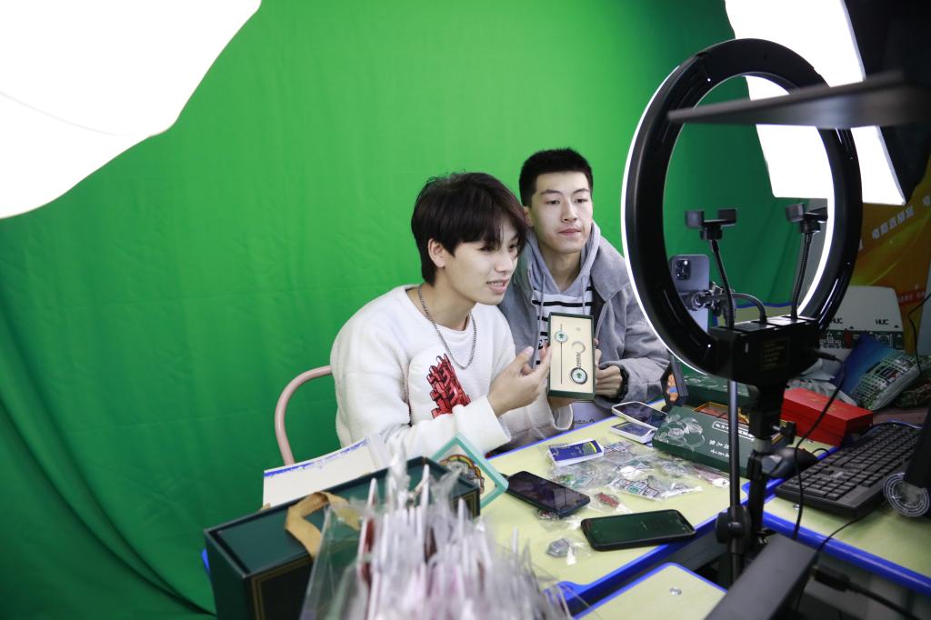 创业实践项目团队在孵化园直播间通过抖音现场直播