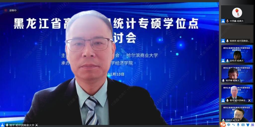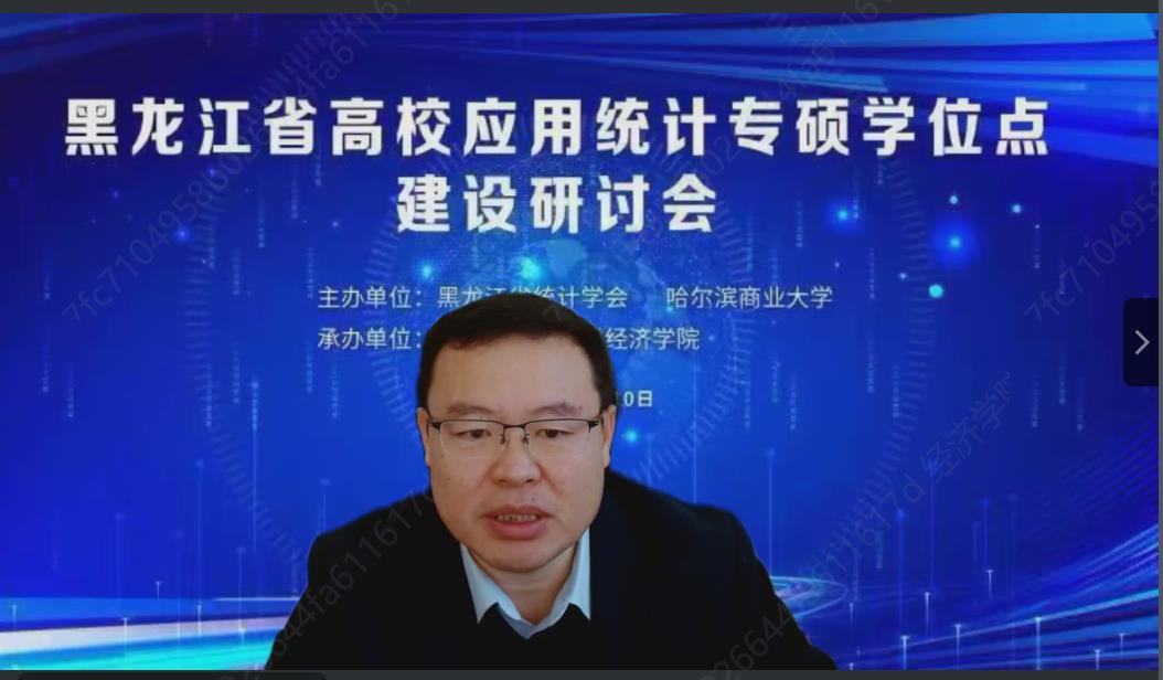 近日,由黑龙江省统计学会与哈尔滨商业大学共同主办、经济学院承办的黑龙江省高校应用统计专业硕士学位点建设研讨会以线上直播的方式召开。本次研讨会旨在通过邀请省内外统计学科知名专家、学者,结合大数据技术发展、社会需求和专业优势,围绕应用统计专业硕士学位点人才培养、特色课程设置、企业导师建设、数据工程方向建设等相关问题展开研讨和交流,进一步促进黑龙江省高校应用统计专业硕士点及统计学科建设与发展。我校副校长、博士生导师王巍教授,我校副校长、博士生导师赵大伟教授,黑龙江省统计学会秘书长张景鸣研究员等出席大会。