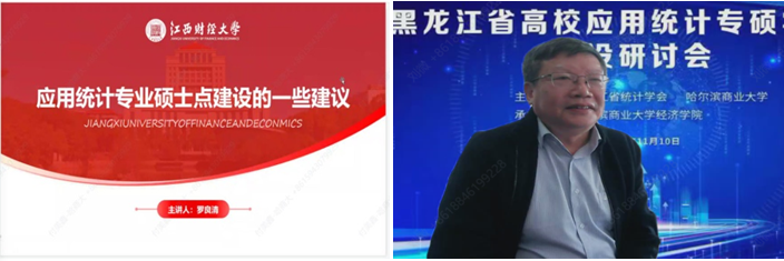 全国应用统计专业学位研究生教育指导委员会委员、国务院政府特殊津贴专家、国家社科基金统计学科组评审专家、江西财经大学统计学科带头人、博士生导师罗良清教授,全国应用统计专业学位研究生教育指导委员会委员、入选国家百千万人才工程并授予“有突出贡献中青年专家”荣誉称号、教育部新世纪人才、天津财经大学统计学院院长、博士生导师杨贵军教授,全国应用统计专业学位研究生教育指导委员会委员、中央财经大学统计与数学学院院长、博士生导师贾尚晖教授,国家社科基金重大项目首席专家、北京师范大学统计学院/国民核算研究院、博士生导师吕光明教授,哈尔滨工业大学数学学院概率统计与运筹控制系主任(研究所所长)、大数据和人工智能研究中心副主任、概率论与数理统计硕士点、应用统计专业硕士点和统计学学科博士点负责人、国家双一流统计学本科专业负责人、博士生导师田波平教授应邀出席研讨会并作主题发言。