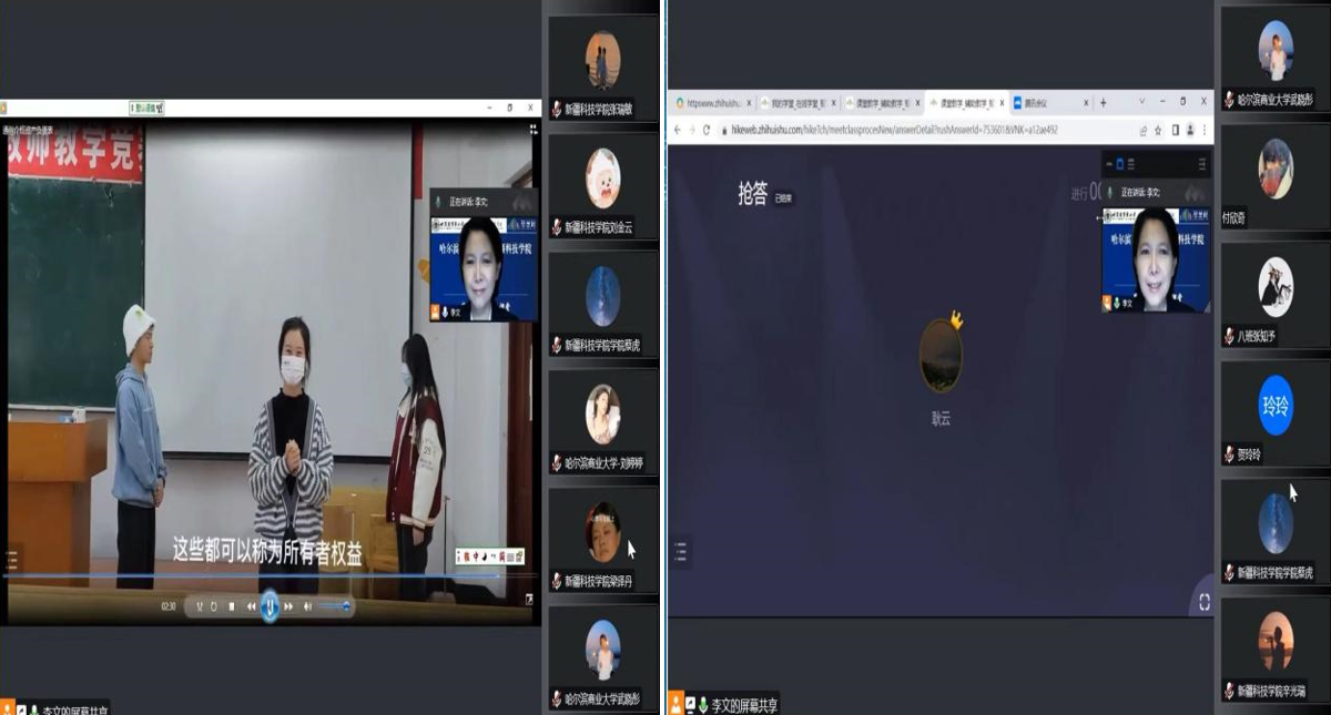 我校《会计学》课程自2019年在智慧树平台上线以来,累计25所学校、1.39万人选课,深受学生欢迎,2021年获得黑龙江省一流本科课程。课程负责人、我校会计学院会计教研室主任李文教授在接到新疆科技学院和智慧树网邀请后,暑假期间与新疆科技学院课程负责人曹莉媛老师、智慧树慕课西行代表以云端为桥梁,利用虚拟教研的方式,展开了教研活动,详细规划课程内容,周密部署课堂教学环节,为《会计学》同步课堂打好基础。