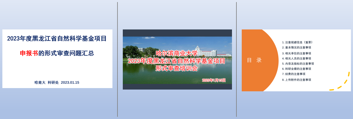 窦博鑫作了题为《2023年度黑龙江省自然科学基金项目申报书的形式审查问题汇总》汇报,对形式审查中常出现的共性问题进行梳理和总结。张帅从“如何撰写省自然基金项目可研报告”出发,作了多维度地剖析、多角度地讲解。邱泽国对本次会议作了总结,强调形式审查在2023年度黑龙江省自然科学基金项目申报中的重要性,要求各位老师要按照会议精神进一步认真修改项目申请书和可研报告,力争在全省突出重围,取得2023年度黑龙江省自然科学基金项目新的佳绩。
