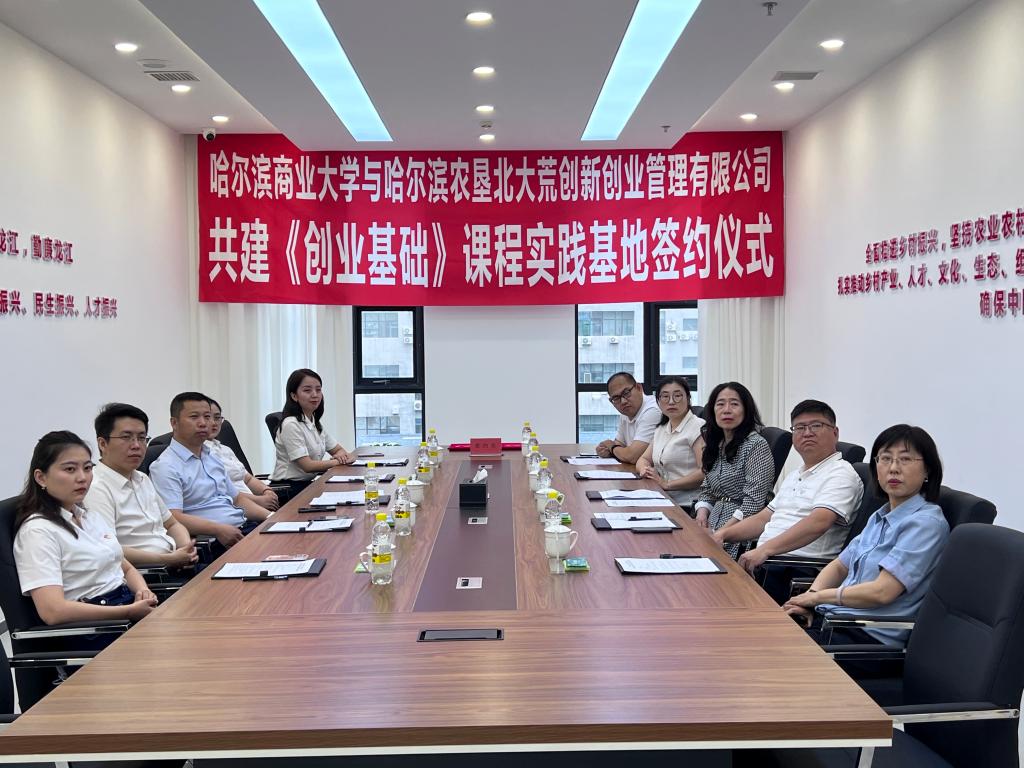 为有效推动优势资源互补,探索高校创新创业人才培养新路径,搭建校企合作新平台,实现强强联合、多方共赢,7月10日下午,哈尔滨商业大学教务处与哈尔滨农垦北大荒创新创业管理有限公司举行了《创业基础》课程实践基地共建签约仪式。