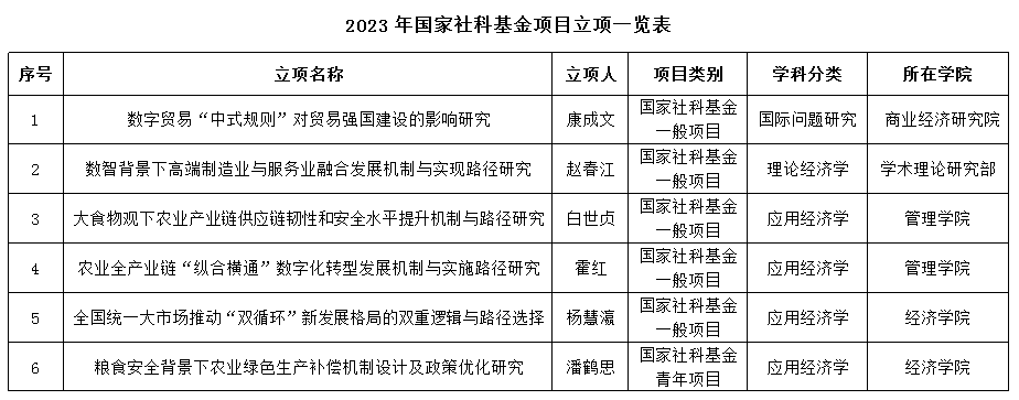 近日,全国哲学社会科学工作办公室公布了2023年国家社科基金项目立项名单,我校国家社科基金项目立项数再创佳绩,共有6项课题获批年度立项,立项总数位列全省高校第3位,彰显了我校哲学社会科学研究蓬勃发展的良好势头,对于提升我校学科学术影响力以及促进优势学科建设意义重大。