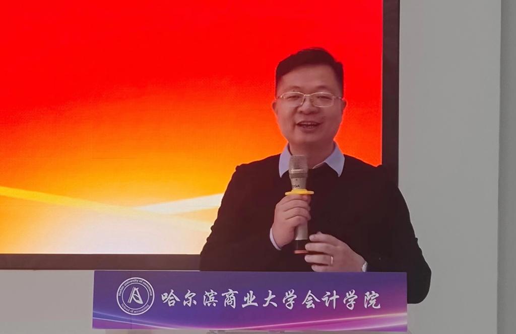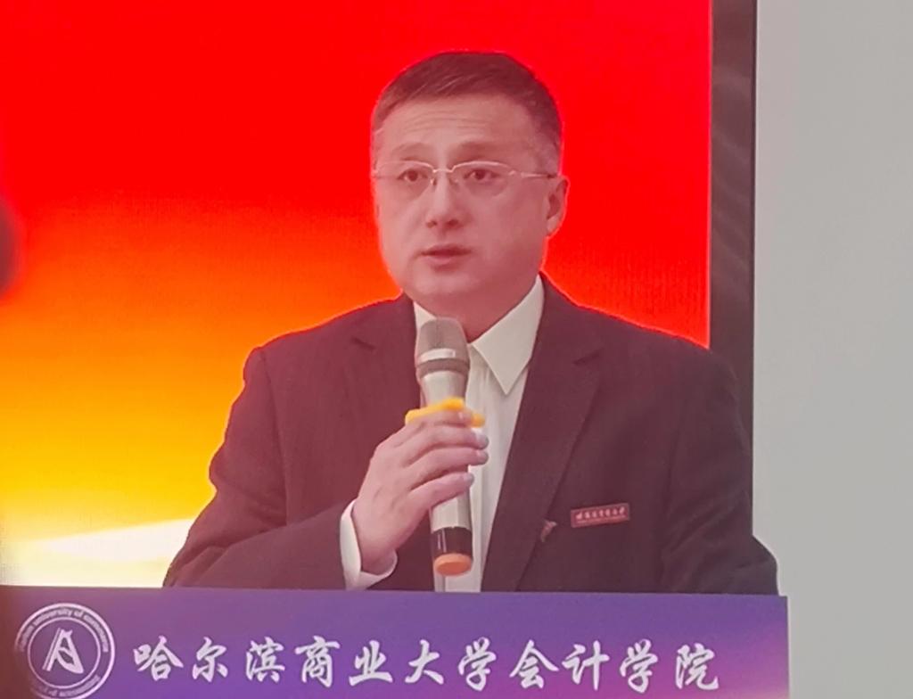 会计学院院长张劲松指出,数字改变生活节奏,数字改变教育方式,数字改变知识结构。张劲松介绍了沈阳跃客教育科技有限公司董事长付伟先生,指出他作为哈商大会计学院的优秀校友,在毕业多年后依然情系母校、情系龙江,为振兴东北经济积极贡献自己的力量,也希望通过智能+比赛,能够为学生们搭建学习和训练的平台,契合数字化时代的社会需求。