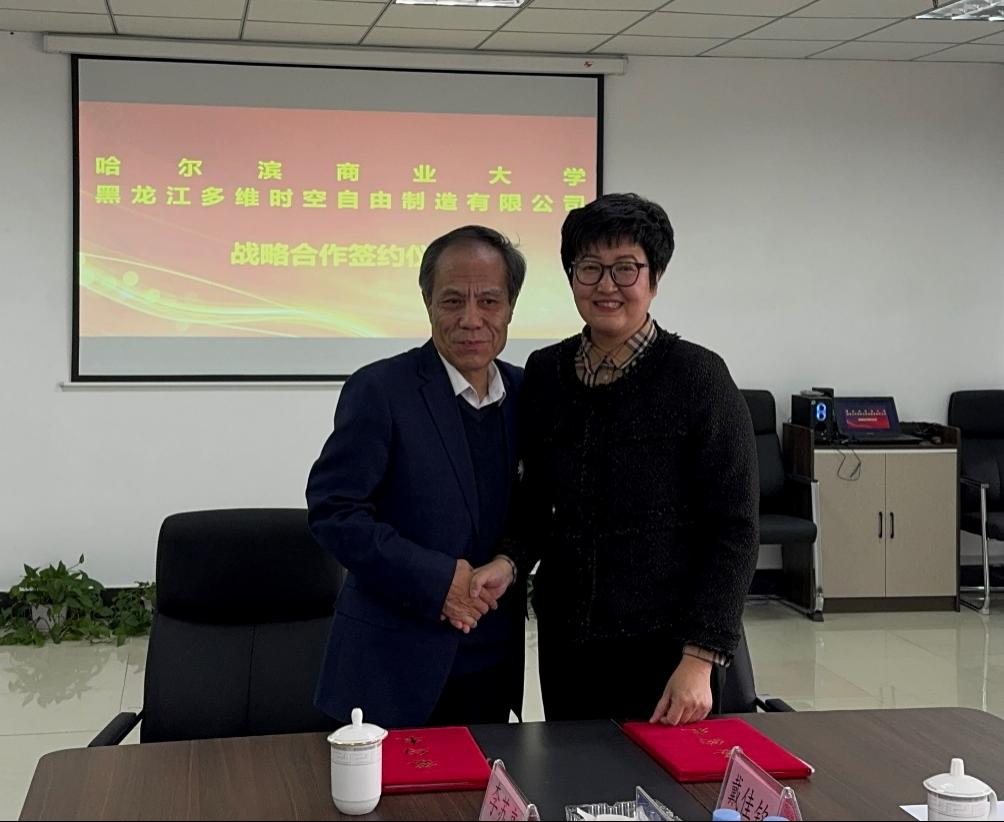 10月21日,我校设计艺术学院副院长周威受邀赴大庆市高新区与黑龙江多维时空自由制造有限公司董事长刘思佥签订校企合作协议。此次签约标志着哈尔滨商业大学设计艺术学院与黑龙江多维时空自由制造有限公司正式建立校企合作关系。