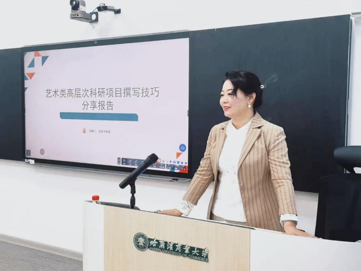 为了提升学院教师科研工作能力,提升科研项目撰写水平,11月15日下午,由设计艺术学院和科研处联合主办的哈尔滨商业大学“学术大讲堂”第四期——艺术类高层次科研项目撰写技巧分享报告会在南校区职教楼301室举办。本次讲座邀请山东财经大学艺术学院张俊华教授作为主讲嘉宾。设计艺术学院党委书记陈明军出席讲座,全院教师、研究生参加了讲座。本次讲座由科研副院长丁凌云主持。