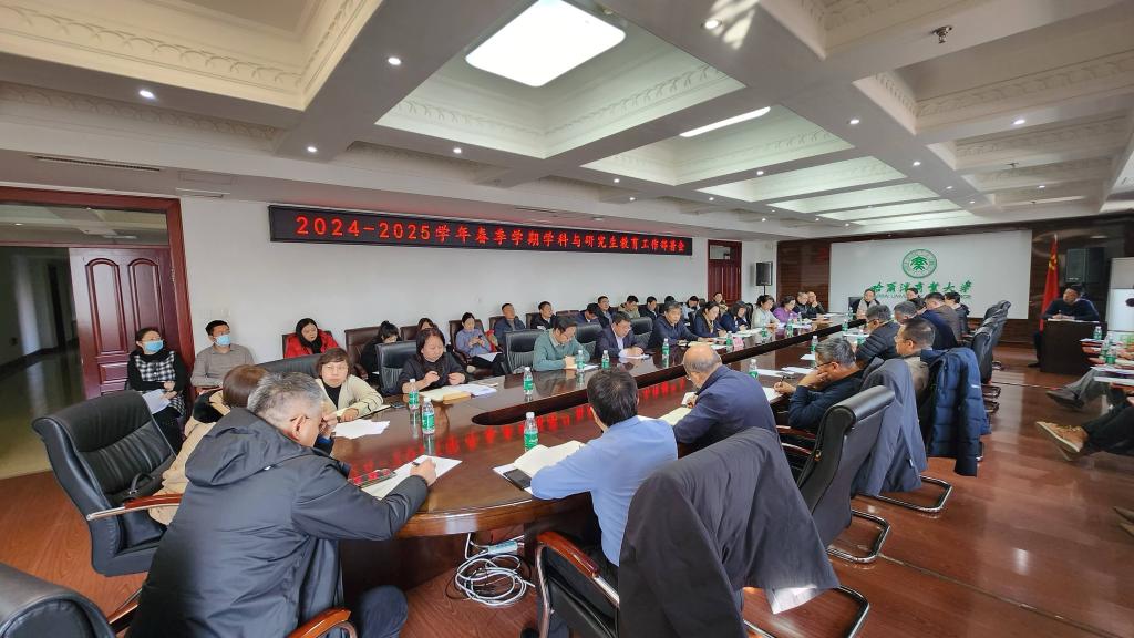 为全面落实教育强国建设的战略任务,统筹推进学科建设与研究生教育高质量发展,3月6日下午,我校在行政楼3楼会议室召开2024-2025学年春季学期学科与研究生教育工作部署会。党委常委、副校长王福友出席会议并讲话,各学院院长、分管副院长、学科及专业学位带头人、职能部门负责人及研究生学院全体成员参加会议。会议由研究生学院院长赵春雨主持。