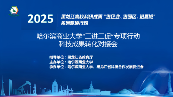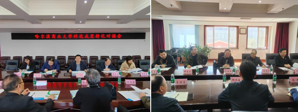 为深入落实黑龙江高校科研成果“进企业、进园区、进县域”系列专项行动,推动龙江高校成果走出实验室、走进生产线、走上振兴路,4月15日上午,我校与黑龙江省科技合作发展促进会举行哈尔滨商业大学“三进三促”专项行动科技成果转化对接会。活动由哈尔滨商业大学主办。黑龙江省科技合作发展促进会副会长关丽娟,哈尔滨龙哈食品有限公司总经理王忠仁、副总经理邢永生,肇东明珠农超有限公司董事长栗永田、总经理邱延斌,东兴建筑集团总裁佘春雨,我校科研处处长邱泽国、食品工程学院副院长李俊生、园区与产业办公室副主任刘涛、商务学院副教授徐惠坚、科研处刘佳参加会议。会议由邱泽国主持。