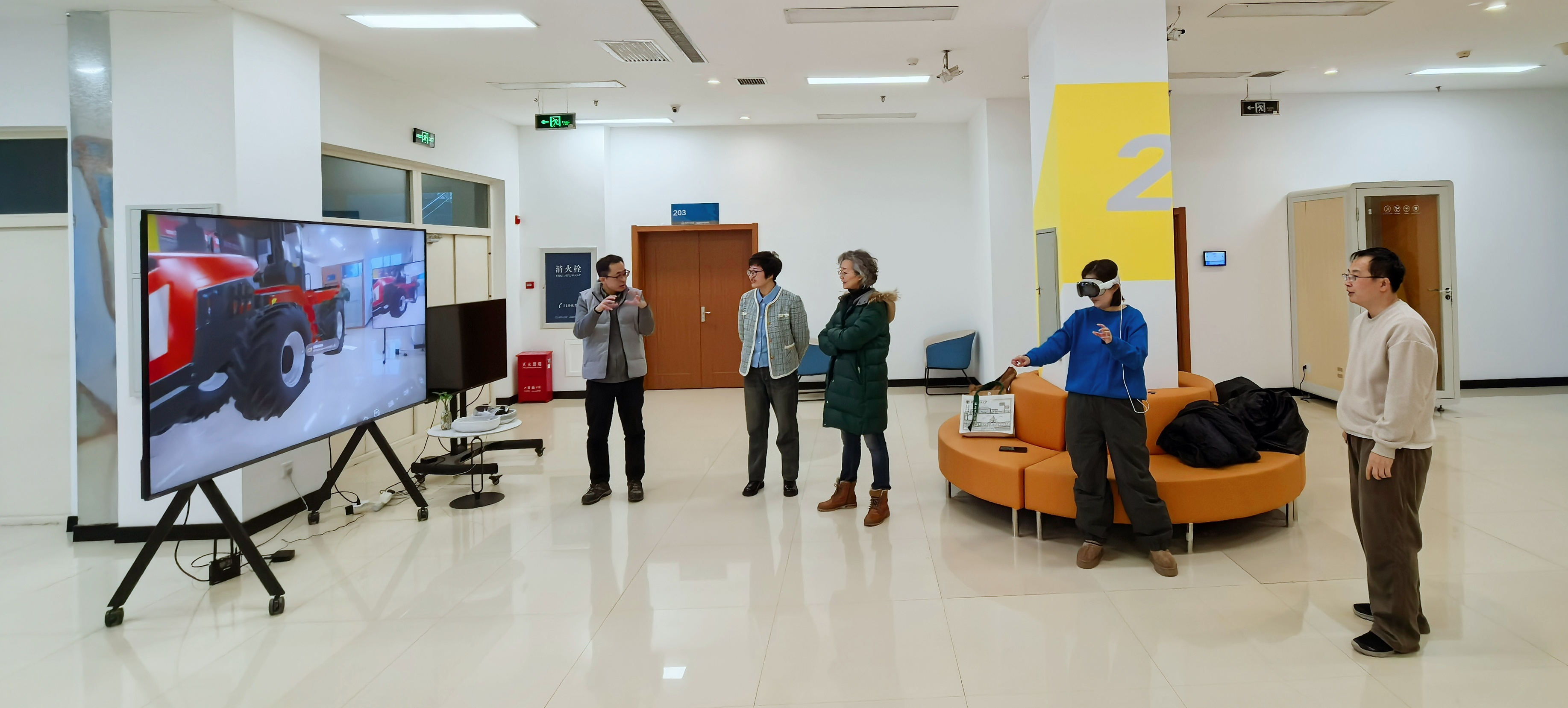 在公司负责人杨晓光陪同下,学院教师一行先后参观了企业新研发产品展区,近距离接触了前沿设计成果与创新技术。随后,观看了公司打造的标杆案例,深入了解企业在产品研发、项目落地等方面的实践经验与行业资源。