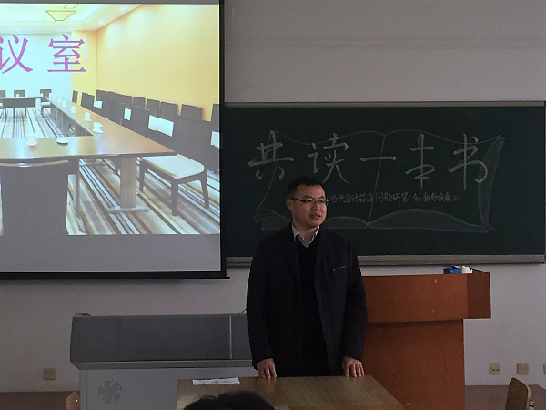 会计学院第十届"共读一本书--研究生学术创新论坛"(第二期)于2017年10月19日下午15时30分在主楼0822教室正式拉开帷幕。研究生学院赵大伟书记,会计学院副院长张劲松教授、徐鹿教授以及2017级会计学全体研究生出席了本次论坛。论坛开始,研究生学院赵大伟书记对活动给予高度评价,并对同学们提出了殷切的希望,希望同学们通过这个活动更加热爱读书,希望活动越办越好,成为会计学院的品牌。