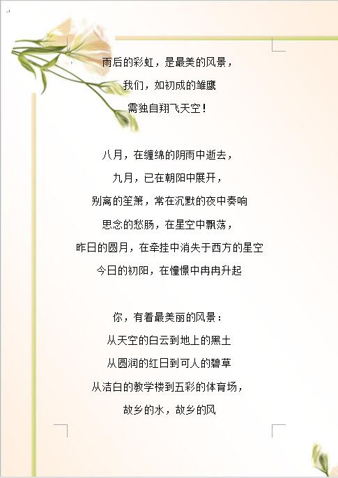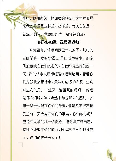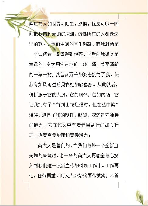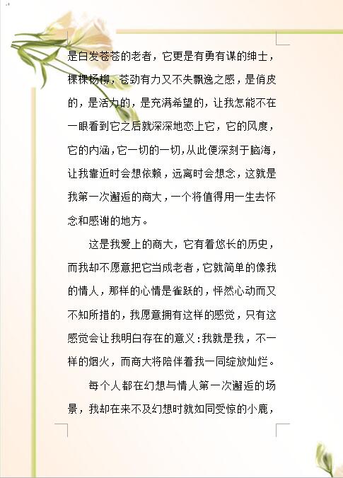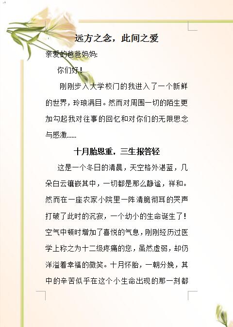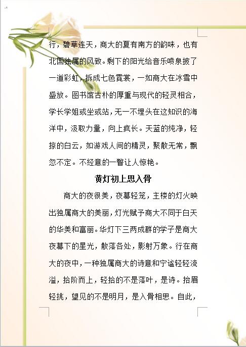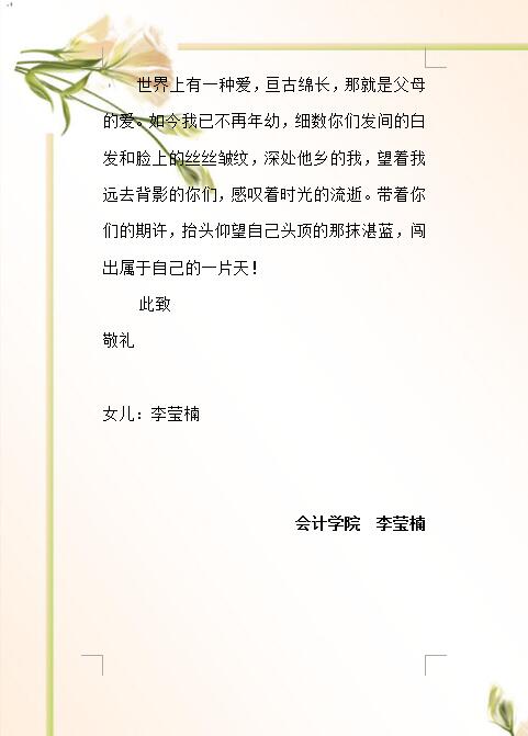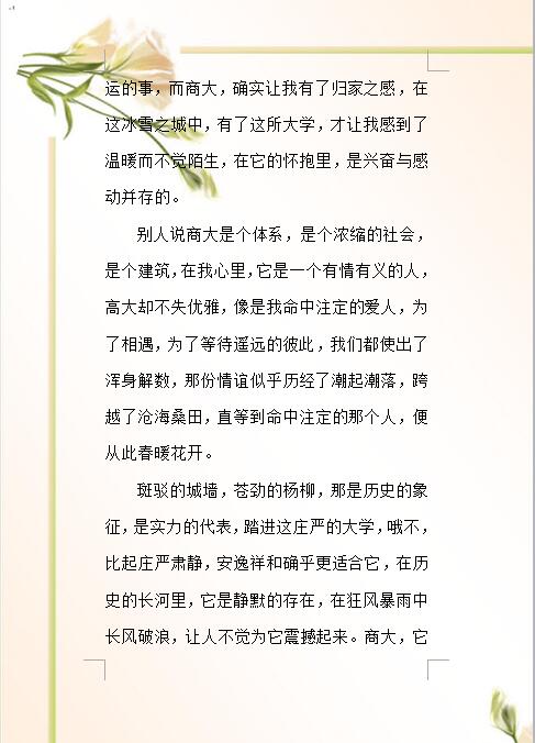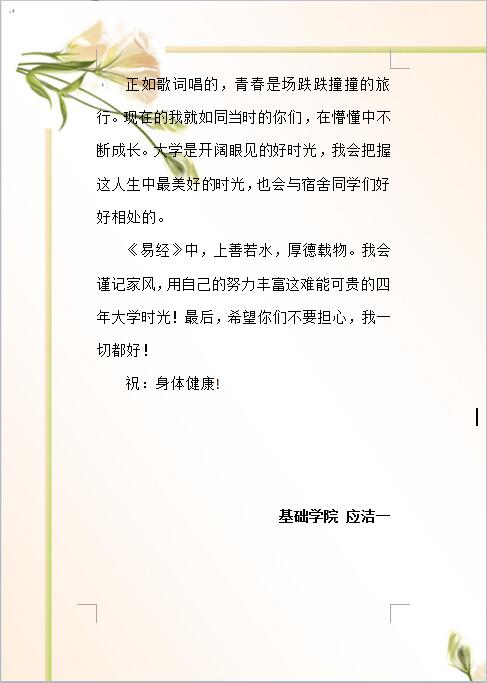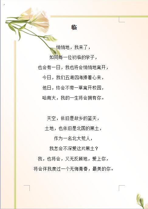 九月,校团委以2016“拥抱商大,梦想启航”新生节为契机,依托哈商大“青年之声”平台面向全校新生开展了主题为“我与商大第一次邂逅”和“在大学写给父母的第一封信”的征文活动。通过主题征文活动,激发新生参与校园文化生活的热情,倾听新生初入校园的心声,增强归属感,并表达对家乡、对父母的感恩之心与思念之情,并使他们更快的融入到商大这个大家庭中。截止到9月18日活动结束,共收到全校18个学院500余名新生提交的作品。校团委联合基础科学学院中文教研室,现选择部分优秀作品进行展示。新生们以清丽优美的语言诉说着他们最真挚的情感,表达了对大学生活的憧憬与期待。