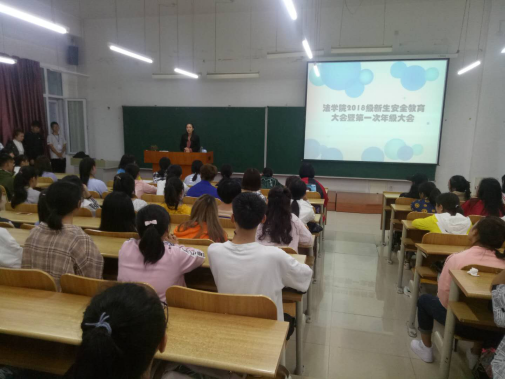 2018年8月24日下午6时,法学院在主教学楼3103室举行了2018级新生安全教育大会暨第一次年级大会,新生辅导员关欣对全体新生进行了安全教育和法制教育。