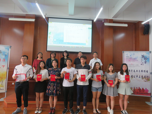伴随着音乐声响起,法学院为毕业生精心制作的毕业视频勾起了他们大学四年的美好记忆。在庄严肃穆的国歌声中,毕业典礼正式开始。首先由法学院党总支书记刘任重教授宣读2017届毕业生学习标兵、2016-2017年度黑龙江省三好学生、2017届校优秀毕业生、院优秀毕业生获奖名单,接着与会领导为获奖同学颁奖。本届毕业生中,37名同学被国内外知名学府录取为硕士研究生、14人通过国家司法考试、10名在社会实践、志愿服务、自立自强、体育比赛等方面取得突出成绩的毕业生均在毕业典礼上获得了表彰。