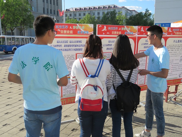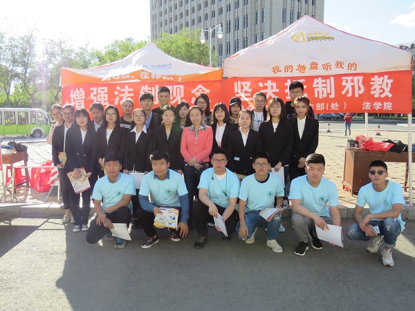 2017年5月25日至5月27日,法学院分别在A、B区食堂前摆放为期3天宣传展台,通过发放传单,讲解展板,播放宣传口号等方式向全校同学宣传邪教的危害性,提升同学们的防范意识,防止误入歧途。