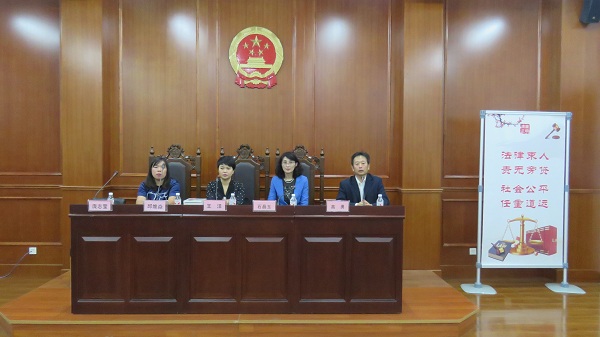 当晚六点整,三位校友在院长石晶玉教授、副院长高勇老师陪同下来到教学主楼一楼的模拟法庭,与早已等候在这里的研究生同学们见面、交流。