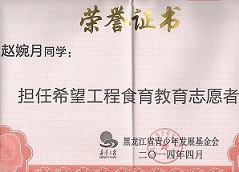 2.赵婉月同学获得第七届黑龙江省优秀青年志愿者