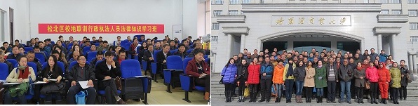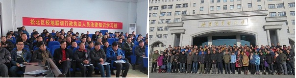 松北区政府为进一步加强对全区行政执法人员培训管理,提高行政执法人员的整体素质和依法行政工作水平,委托我校法学院对松北区全区行政执法人员进行了三期共三周的行政执法人员法律知识集中脱产培训,于11月27日圆满完成全部培训工作。