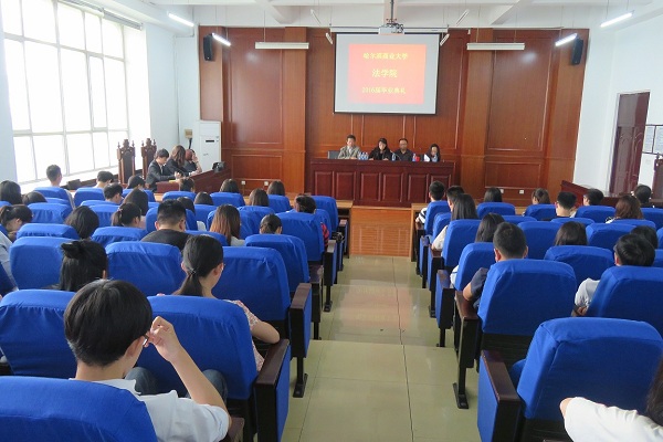 6月13日9时,法学院在模拟法庭隆重召开2016届毕业典礼,法学院院长石晶玉教授、院党总支书记赵国军,副书记高勇、院团委书记李萍及教师代表高明华教授出席,本科和研究生毕业生以及在校生代表出席。毕业典礼由院党总支副书记高勇主持。