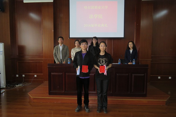随后由教师代表高明华教授为本届毕业生带来了殷切的希望和祝福;在校生代表为学长学姐带来作为学弟学妹们的真诚的祝福和感谢; 优秀毕业生李丽雯同学代表2016届全体毕业生对大学四年来给予敦敦教诲学院老师们的真挚感谢,对于哈尔滨商业大学法学院这一平台给予自己四年时间展现的感谢。对于老师未来生活美好抱以真诚的祝福,并对于学弟学妹们未来学习生活的殷切期待。