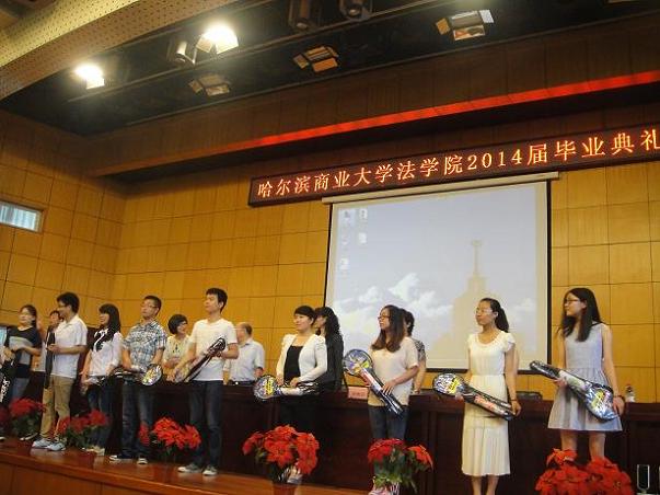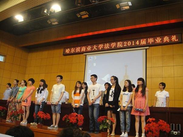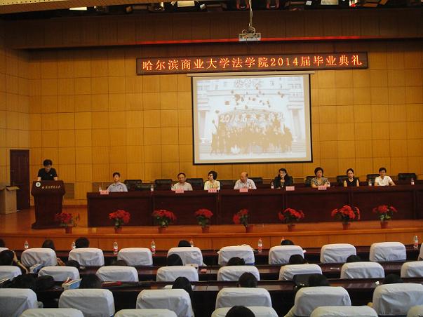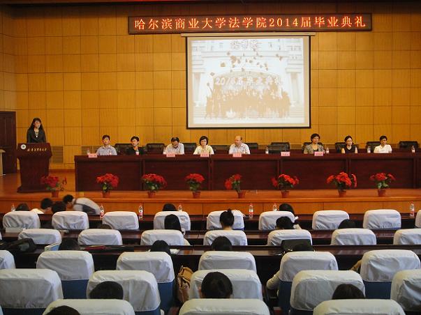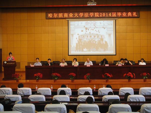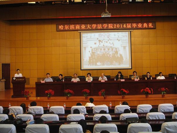 6月18日上午,哈尔滨商业大学法学院2014届毕业生毕业典礼在专家公寓国际报告厅隆重举行。教务处处长孙智慧、校团委书记贾妮燕应邀参加,法学院全体师生共500余人参加了典礼。
