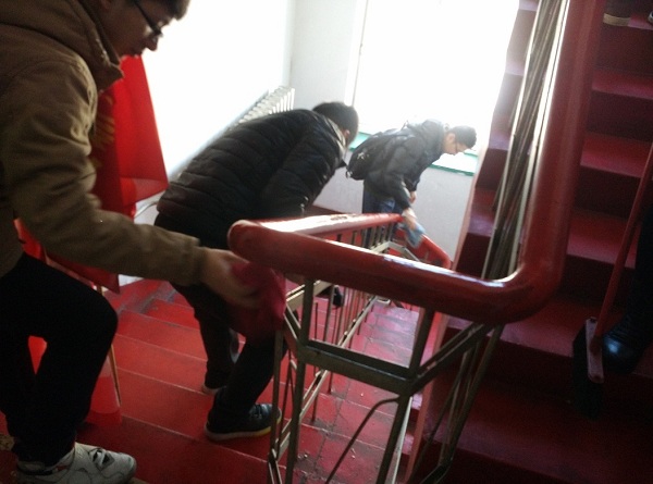 中午,法学院的志愿者们迎着带有丝丝凉意的春风迈着轻快的步伐奔向松北区老年公寓。一进入公寓,就受到了公寓领导以及老年人的热烈欢迎。为了给老年人一个整洁明亮的环境,志愿者们拿起拖布、抹布对活动大厅、走廊、窗台、老人的房间、卫生间进行细致的打扫,大到桌椅板凳小到犄角旮旯,志愿者们进行了全面彻底地清洁。志愿者到老人们的房间,陪老人聊天,给他们节日的温暖,有的志愿者热情地帮助老人梳头发,剪指甲,陪老人度过了一个愉快的下午。