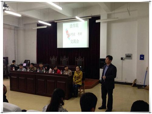 为了加强学风建设,营造良好学习氛围,进一步发挥榜样的力量,2014年5月13日,法学院召开了司法考试和考研经验交流会。邀请了司法考试及考研成功的10级毕业生分享成功经验,交流学习心得,为同学们提供了考研方向及经验等有效信息,为同学们指明了学习的方向和道路。
