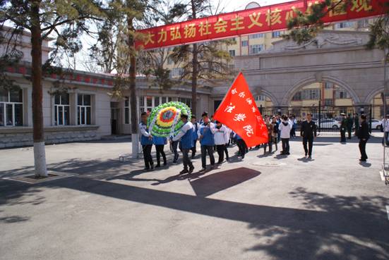 2014年4月1日,在法学院党总支副书记高勇老师、团委书记李萍老师、副书记钱思彤老师的带领下,法学院学生代表身着校服到哈尔滨市烈士陵园进行祭扫。同学们在烈士纪念碑前敬献花圈,静默哀思。法学院党总支副书记高勇发表了讲话,他勉励大家继承和发扬老一辈革命家的优良品质和革命传统,珍惜今天来之不易的和平环境,树立“爱学习、爱劳动、爱祖国”的信念,发挥法学、社会工作专业优势,刻苦学习勇于实践,积极践行社会主义核心价值观,为实现伟大的“中国梦”努力奋斗。学生代表在发言提出了作为青年一代应该承担历史责任和使命,全面提高自己的综合素质,树立理想、掌握知识、敢于创新、甘于奉献的观点;最后大家共同瞻仰烈士陵墓,参观革命英雄纪念馆,了解革命烈士的事迹,让同学们深刻体会到了今天幸福生活来之不易,更应该学会珍惜。