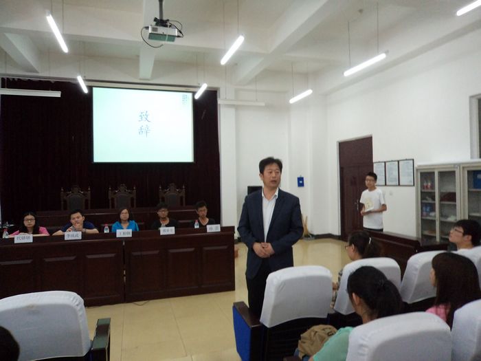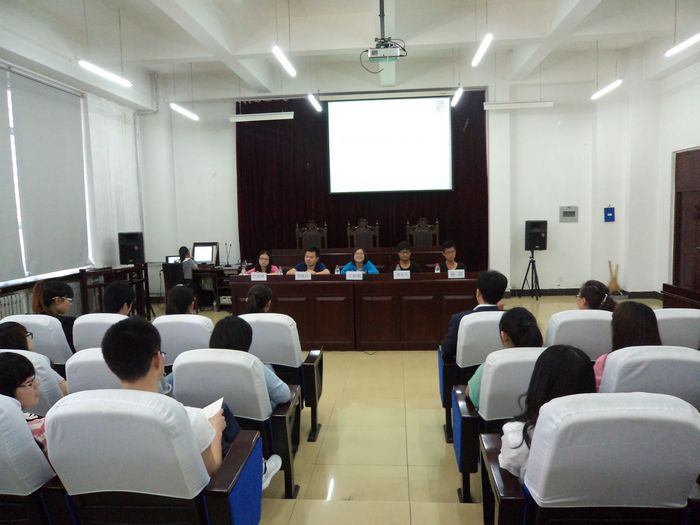 2013年5月24号晚五点,法律援助中心在模拟法庭面向法学院全体同学举行了考研、司法考试交流会。法学院党总支副书记高勇副教授、辅导员钱思彤老师出席了此次交流会。高勇副教授致开场辞。