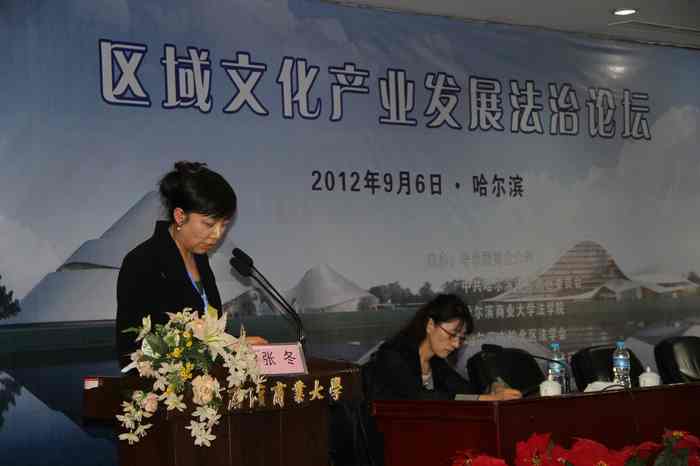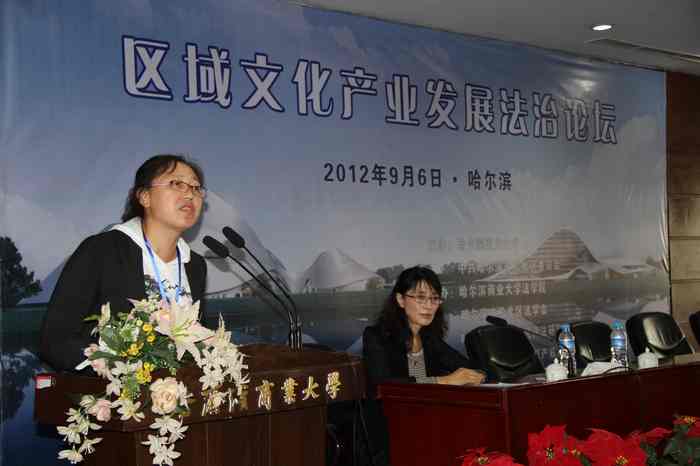 2012年9月6日上午九点,由哈尔滨商业大学和中共松北区委主办,哈尔滨商业大学法学院、松北区法学会、哈尔滨市法学会民商法研究会、黑龙江省法学会知识产权法研究会共同承办的“区域文化产业发展法治论坛”在商大酒店三楼多功能报告厅隆重开幕。