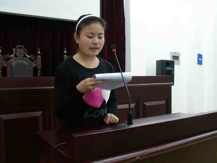 为提高广大学生学习英语的积极性,按照《哈尔滨商业大学新生英语朗读大赛》的通知精神,2012年9月18日下午,哈尔滨商业大学法学院于主楼模拟法庭举行了英语朗读比赛初赛。法学院院长石晶玉教授,院团委书记李萍老师出席了本次比赛,法学院蒙启红、龙迎湘老师,外语学院王晶、王卓、曹韵老师担任了比赛的评委。