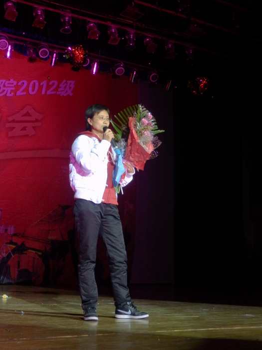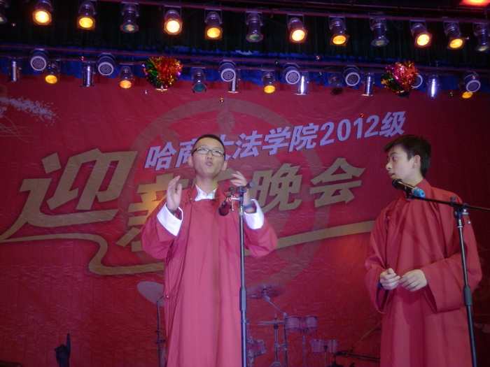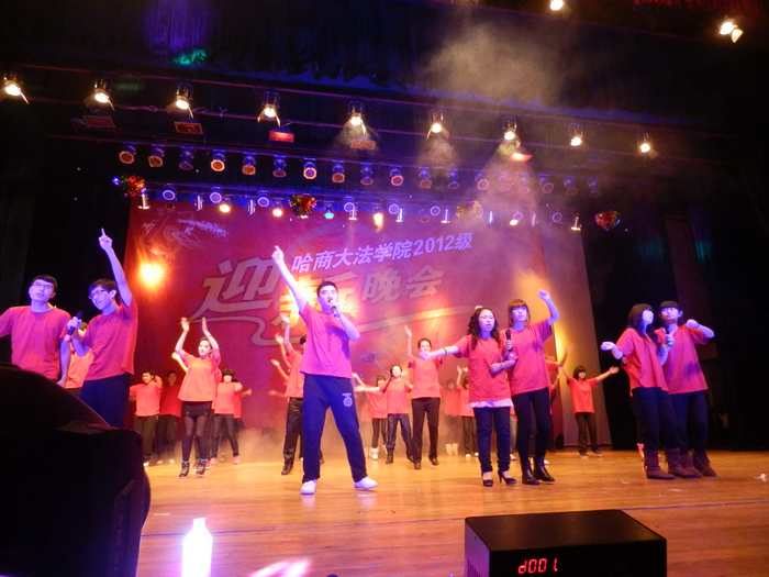 迎新晚会激情荡漾,令人流连忘返,是一个师生同乐的不凡之夜。开场舞MJ和江南Style令现场气氛十分活跃,每个人都随着舞蹈欢呼呐喊;一首《离开地球表面》更是唱出了同学们的心声,使在场观众连连叫好;新疆舞《青春岁月》和蒙古歌《蓝色的蒙古高原》给观众带来了视觉和听觉的享受;更为精彩的是国际法教研室主任蒙启红老师的《Jambalaya》和张伟东老师、张雅萍老师的情歌对唱掀起了晚会的一个又一个高潮!最后晚会在一曲激昂的《我相信》的歌声中落下帷幕。