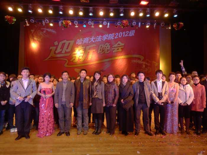 法学院于11月13日晚5:00在B区大礼堂举行了一场以“激扬青春、魅力法学”为主题的迎新生文艺晚会。哈尔滨商业大学学生处处长冉庆国教授,研究生学院院长王福友教授,校团委副书记贾妮燕副教授,校团委王鹤腾老师,学生处崔本强老师、法学院院长石晶玉教授,院党总支副书记赵国军副教授、副院长徐铁岩副教授、院团委书记李萍老师,2011级辅导员钱思彤老师及法学院部分老师及全体学生观看了整场晚会。石晶玉院长致开幕辞,表达了对2012级新生的殷切希望。