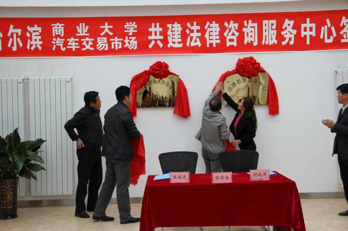 2012年4月20日法学院与哈尔滨汽车交易市场合作签约仪式在哈尔滨汽车交易市场阳光大厅举行。双方同意将哈尔滨汽车交易市场作为哈尔滨商业大学法学院的“法学实践教学基地”,哈尔滨汽车交易市场依托哈尔滨商业大学法学院建设“法律咨询服务中心”。