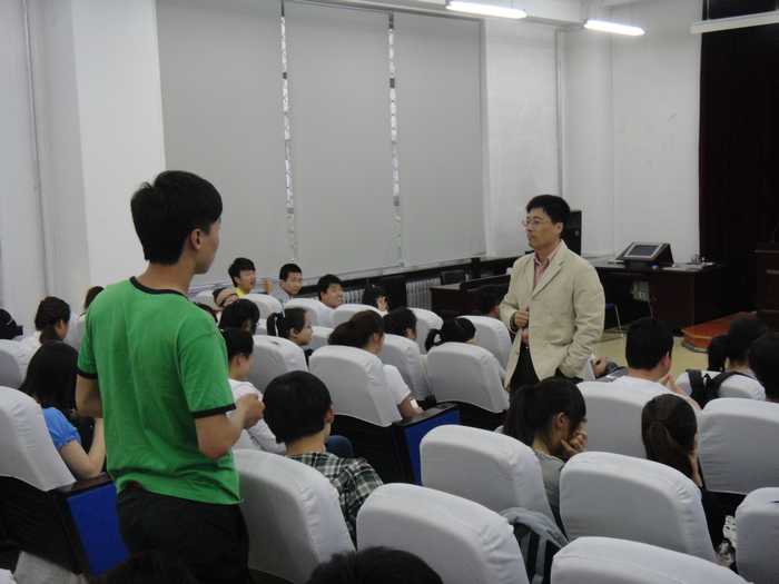张泰复教授现场了解了部分同学人生中最害怕的事情,并由此总结出人生最基本的心理是得到外界的认同感的结论,同时指出了人在生存时,会产生不同程度的对某个集体的归属感的观点。为了使同学们更好地理解心理方面的知识,他具体列举了一些相关的典型事例,比如麋鹿的故事、奥运会上中韩射击运动员的表现以及身边的真实事例等。说到如何缓解压力,过好大学生活的问题,他提出了自己的建议,一是要明确自我意识,对自己有一个全面的了解和认识;二是要奠定自身的学术基础,加强对学术的研究;三要做好职业生涯规划,确立奋斗目标。