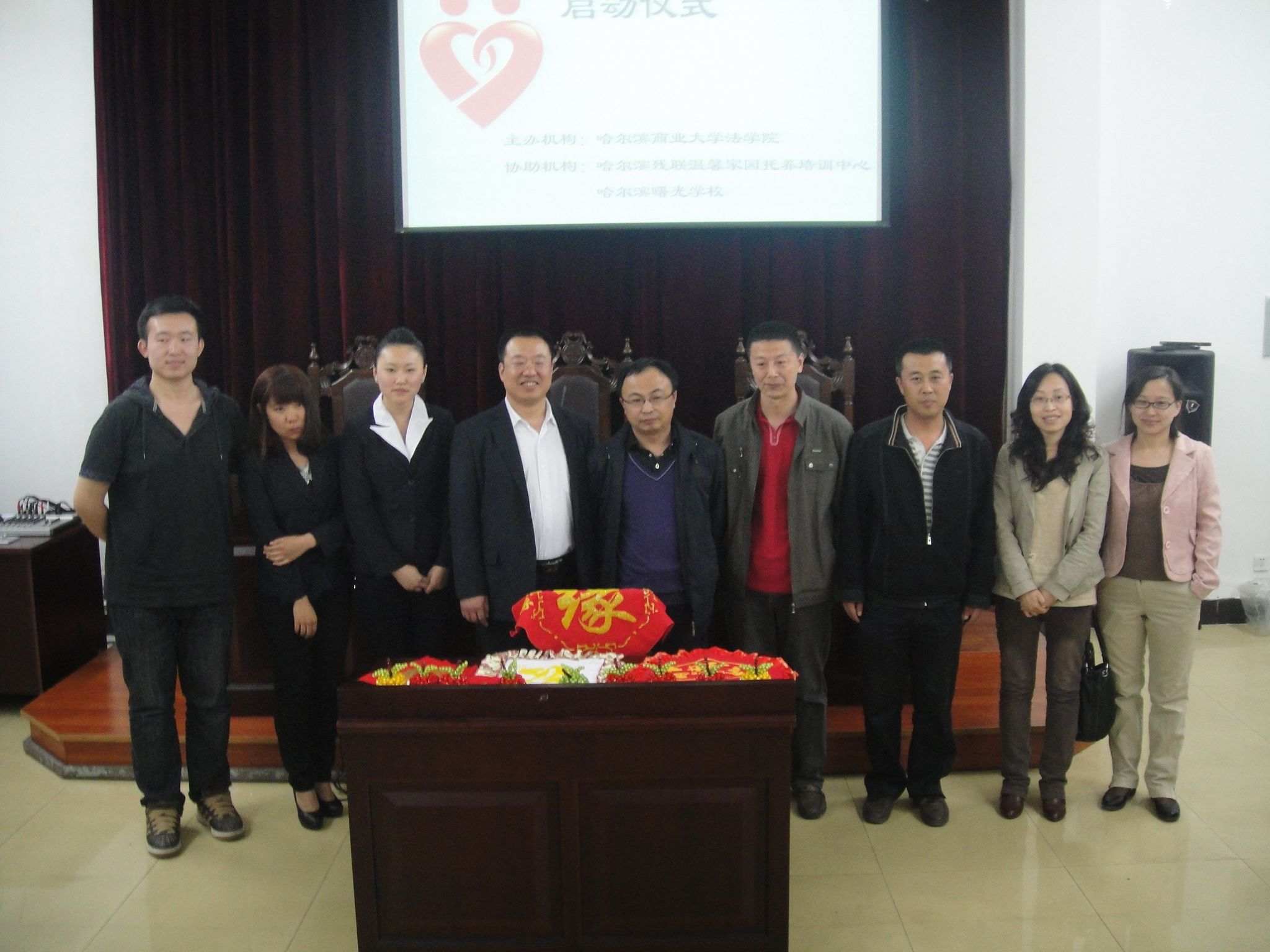为了表达对社会弱势群体的关心和帮助,增强学生爱心志愿与奉献精神,2011年5月20日 ,哈尔滨商业大学法学院联合哈尔滨残联温馨家园托养培训中心、哈尔滨曙光学校,共同在我校模拟法庭举行了哈商大法学院慈善义卖周启动仪式。爱心志愿服务队 马波 先生,哈尔滨市残疾人托养培训指导中心方东海主任、 党士龙 先生,哈尔滨商业大学法学院书记 赵国军 老师,团委书记 李萍 老师,社会工作教研室主 任李雪 老师,各兄弟学院学生会主席以及09、10级部分同学出席了此次义卖周启动仪式。