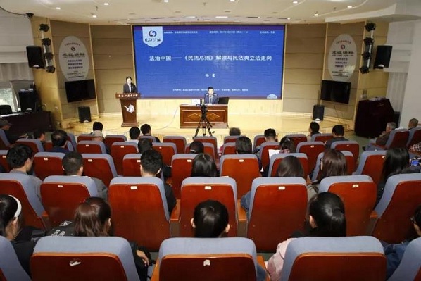作为中国法学会民法典编纂领导小组成员,杨震教授从《民法总则》的时代特点,《民法总则》的创新与发展以及《民法总则》统领下的民法典立法走向三个方面,全面、细致的阐述了民法总则的主要核心内容和民法典立法的前沿信息。杨震教授指出,《民法总则》积极回应了社会发展需求,具有鲜明的时代特色,特别是涉及到普通大众切身利益的相关立法,并结合社会鲜活案例进行了细致讲解。他认为《民法总则》与时俱进,加强了对人身权利的保护,尊重人格利益,维护人的自由,增加了对生态环境、个人信息、数据和网络虚拟财产进行保护的具体规定,体现了以民为本、立法为民的价值理念,弘扬了中华民族的优秀传统文化,贯彻了科学立法、民主立法的精神。