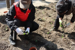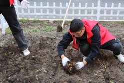 药学院学生党员们统一身着志愿者服装,佩戴党徽,彰显了药学院学生党员积极进取的精神状态和朝气蓬勃的精神风貌。活动开展期间,首先由老师讲解金钱草和芍药的药用特性和生长环境,然后党员们进行合理分工,在搬运中草药植株、刨土、实际栽种等环节协同一致、互相配合,并依据不同中草药材不同生长习性进行科学学习后栽种,高效率高质量的完成了草药种植任务。