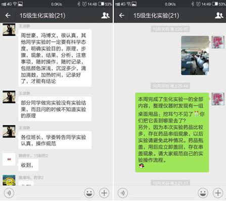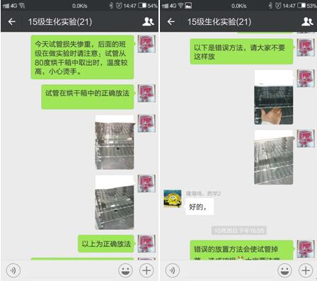 4.下课后,针对实验课上的一些问题进行整理,通过微信进行总结,以指导后续班级进行改正。