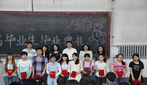 临行的路上没有珍贵的礼物馈赠,送他们几句真挚的话语,伴他们一路风雨兼程。教师代表张翠教授在发言中表达对2014届毕业生的祝贺和对他们未来美好前景的期望,情真意切。毕业生代表赵晶晶同学发言,追忆大学时光,回首青春岁月,欢乐和成长一路随行,真挚的话语之间充满了对母校的不舍和依恋,走出校门,面对机遇和挑战,他们必将奋勇前行。在校生代表孟雅薇同学发言,首先对毕业的学长学姐表示衷心的祝贺,同时表示将以他们为榜样,刻苦钻研,勇创佳绩。