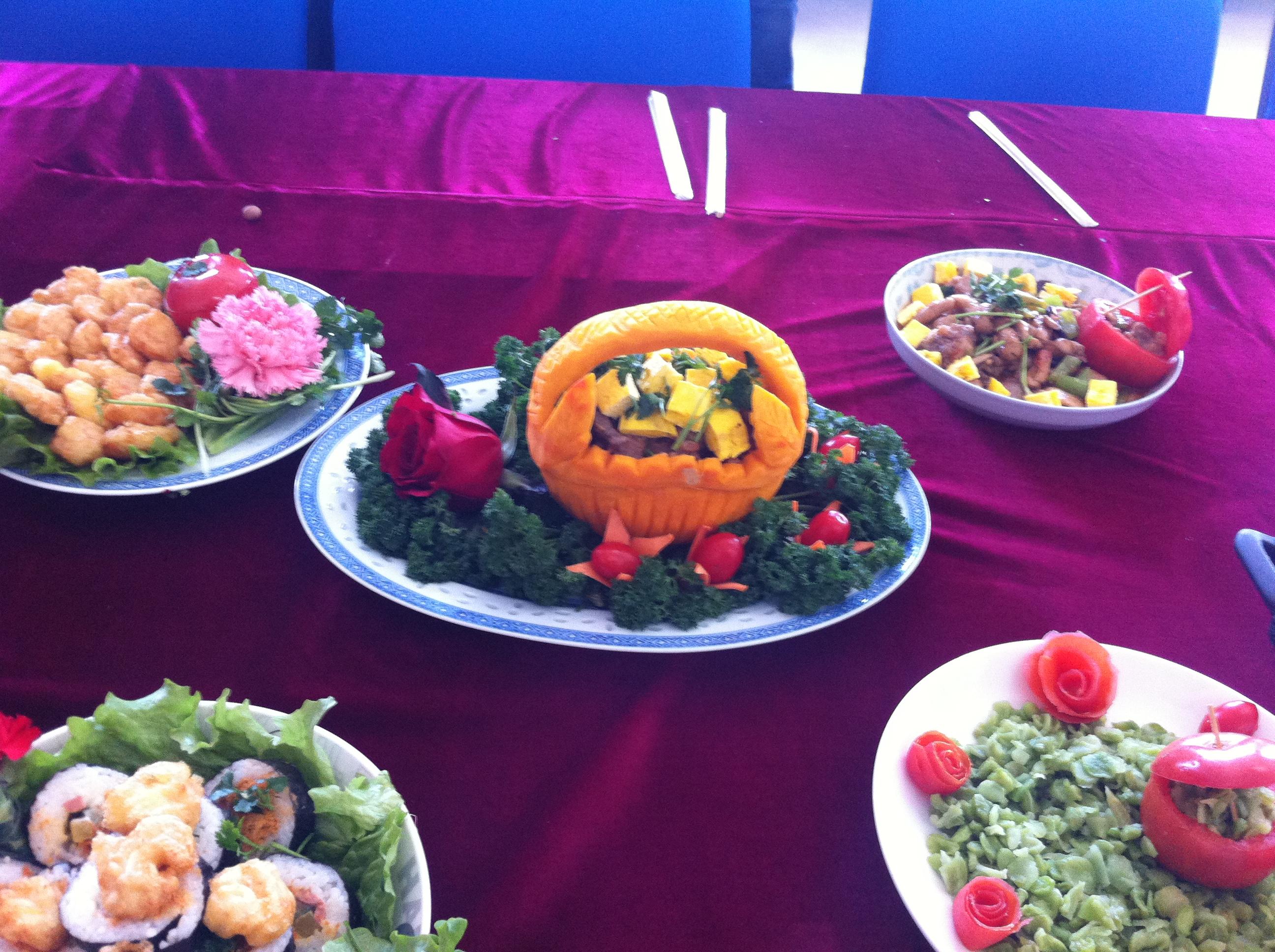 经大家认真评选,中药学教研室推荐的招牌菜“腰果菠菜球”、中药化学教研室推荐的招牌菜“冬瓜银耳汤”和阎教授工作室推荐的“英式凉菜”等菜品入围。最终,药理教研室郭丽萍老师的参赛作品“洪福高照”无论从色泽、外观和口感上都以超乎专业的水准,赢得了全体评委老师的认可,毫无悬念地获得第一名。